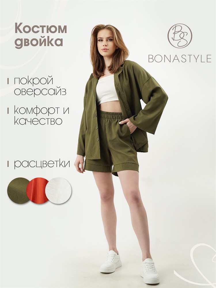Представляем вашему вниманию стильный костюм двойка BONASTYLE из тонкой дышащей ткани с красивой фактурой под лен. Женский комплект состоит из шорт на широкой резинке с прорезными карманами и рубашки оверсайз, под которую также можно носить другие предметы одежды. Состав: бамбук - 95%, эластан - 5%. Вещи из такого материала приятны к телу, не мнутся, отлично держат форму. В отличие от натуральных льняных их очень легко гладить. Поэтому он очень комфортный и практичный.